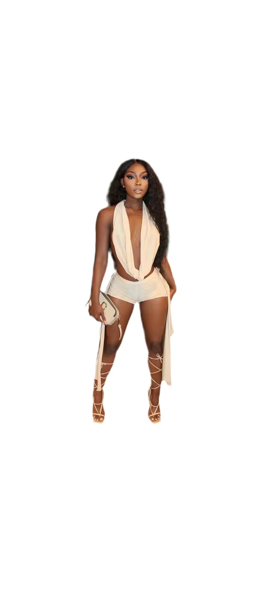 Sexy Hollow Out 2 Piece Sets Woman Outfit Halter Backless Collar Crop Top + Tassels Shorts Matching